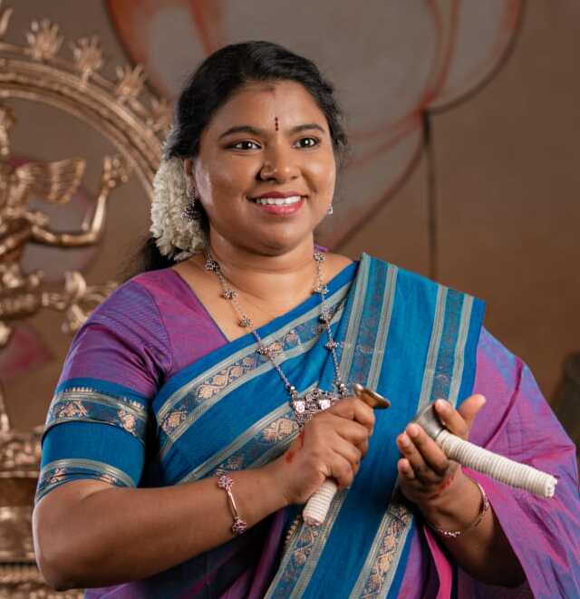 As the first in her bloodline to pursue Bharatanatyam, her journey has been shaped by deep dedication and divine grace & the blessings of her Guru. Trained intensively under the renowned Dr. Smt. Sheela Unnikrishnan at Sridevi Nrithyalaya in Melattur Bani Bharatanatyam, Rajadarshini has been a part of over 300 production performances, captivating audiences worldwide with her grace, precision, and profound understanding of classical Indian dance traditions.